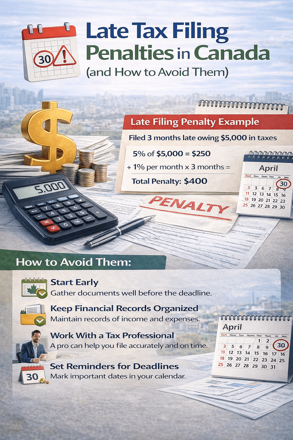 Late filing penalties can add unnecessary costs to your tax bill. By understanding CRA deadlines and preparing early, you can avoid these penalties and stay compliant with Canadian tax laws.